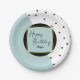 Superbe look design pour une fête d'anniversaire à thème féminin, ce design contemporain présente des pois de confettis éparpillés en noir sur un arrière - plan blanc sur une moitié du design avec un bloc de couleur bleu clair et poussiéreux sur la moitié opposée. Un cadre double doré avec arrière - plan bleu assorti entoure le texte central dans un style magnifique. Un joli visage manuscrit type de script épelle "Joyeux anniversaire" en gros lettrage pour ajouter de l'accent à l'occasion heureuse. Personnalisez le nom avec le nom de l'invité d'honneur d'anniversaire. Note : Ces plaques en papier sont disponibles en 2 tailles. Montré ici dans la taille 7" qui est un bon choix pour servir gâteau d'anniversaire et petits articles, la taille plus grande 9" est un meilleur choix pour servir des gâteaux de fête plus substantiels. Assurez-vous de sélectionner la taille qui correspond le mieux à vos besoins.