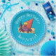 Cette caricature joyeuse de crabe ermite est un violet et orange clair et coloré avec un arrière - plan bleu. Emmène-moi à la mer !