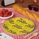 Faites de la magie culinaire à la fête avec cette plaque en papier, qui présente un motif répétitif du jeu de mots "We be jammin" crocheté par de mignonnes jarres miniatures souriantes dansant joyeusement sur un arrière - plan jaune vif. Aménagement, oeuvre d'art et design © W.H. Sim. Voir plus sur zazzle.com/wordsofwhimsy