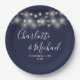 Assiettes En Carton Éclairage de chaîne Signature Script Mariage bleu