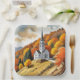Petite église blanche sur une colline avec des montagnes, Feuilles d'automne et arrière - plan d'automne.
