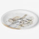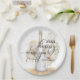 Stylish Happy New Year party paper plates feature a watercolor champagne bottle with gold and white balloons and your details in chic lettering.