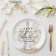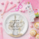 Stylish New Year's Eve party paper plates feature a watercolor champagne bottle and gold and white balloons with your details in chic lettering.
