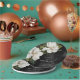 Une plaque en papier de mariage élégante conçue avec une illustration de Magnolia blanche sur un arrière - plan noir. Objets correspondants dans notre magasin Cava Party Design