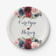 Belles plaques en papier mariage avec des fleurs d'aquarelle peintes à la main en bordeaux, bleu marine et rougissant. La coordination du texte fantaisiste complique le joli design floral. Personnalisez l'assiette avec les noms de la mariée et du marié. Veuillez cliquer sur le bouton "Customiser davantage" pour réorganiser les éléments si nécessaire.