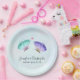 Plaques en papier avec un design romantique délicat. 2 élégants papillons aquarelles, peints en violet pastel et vert. Un arrière - plan d'aquarelle bleu clair avec des touches de rose clair.