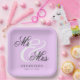 élégantserviettes personnaliséesserviettes de réceptionminimaliste simplescript noirtypographie de police romantiquem et mme mariage napkinscocktail bar dîner réceptionlavande violette pastel