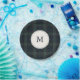 Plaques de papier de Noël modernes avec un design intemporel avec votre monogramme sur un arrière - plan bleu marine et vert poli muet.