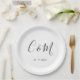 Assiettes En Carton Élégant Monogramme Mariage noir et blanc