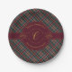 Assiettes En Carton Élégant Monogramme Or Plaid Noël