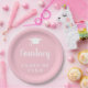Assiettes En Carton Élégant Pastel Pink Nom du script Graduation Cap