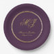 Assiettes En Carton Élégant Plum violet or Monogramme Mariage de scrip