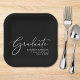 Élégante plaque de papier noir de la fête de graduation avec "Graduate" dans un script blanc moderne chic et le nom de la grad, l'école et l'année de classe dans la simple typographie blanche.