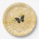 Assiettes En Carton Élégant tournesol étincelant noir papillon or