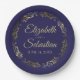 Assiettes En Carton Elégante frontière Ornate Marine Mariage bleu & or