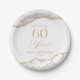 Assiettes En Carton Elégante White Gold Agate 60e fête d'anniversaire