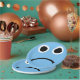 Ces assiettes en papier mignonettes font les fournitures parfaites pour les fêtes d'anniversaire à thème émoji. Comprend une illustration de style dessiné à la main d'un émoticône bleu triste ou d'un émoticône avec de grands yeux google et un sourcil.