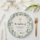 Assiettes En Carton Eucalyptus Gold Cross Baptême Religieux