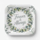 Une carte de voeux mariage délicate avec une couronne d'eucalyptus à l'aquarelle magnifiquement détaillée dans les tons vert menthe et vert sauge, encerclant un arrière - plan blanc texturé et subtil. La couronne comprend des sprigs épars de la respiration du bébé et de minuscules accents perles, créant une atmosphère élégante et un peu rustique, avec une douce lueur qui améliore l'effet d'aquarelle. De l'autre côté de la couronne, le texte "FOREVER & TOUJOURS" est affiché dans une police de texte fluide et moderne dans un gris argenté doux, complétant les tons naturels et évoquant un sentiment de romantisme intemporel. L’intérieur de la carte offre un espace suffisant pour un message sincère et intègre une illustration simplifiée de l’eucalyptus dans le coin inférieur, en maintenant le ton émotif serein et festif.