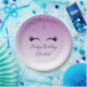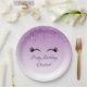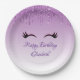 Plaques en papier au design design design et tendance. L'arrière - plan est un dégradé violet avec une image de parties scintillant faux scintillant qui descend du haut. Une paire de cils mignons ceinturés sous l'image de la parties scintillant. Personnalisez avec votre propre texte d'événement.