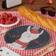 Design amusant mais élégant d'un lama mignon chantant des cantiques de noël en rouge, tricoté casquette avec une manteau sur le dessus et une écharpe d'hiver. Customisez le texte avec l'option modèle facile. Art et design par Mira