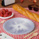 Assiettes En Carton Faux De Neige Blanc Fraîche Sur Violet