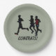 Les silhouettes noires de trois coureurs en marche, jogging, avec éclaboussures de couleur, sont imprimées sur des plaques de papier personnalisées. Félicitations est déjà là, ou vous pouvez facilement customiser le texte sur le formulaire modèle. La couleur arrière - plan peut être customisée à n'importe quelle couleur de votre sélection. Merci pour faire du shopping à CherylsArt sur Zazzle.