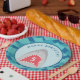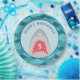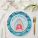 Plaques de fête d'anniversaire de requin avec bouche de requin et vagues.