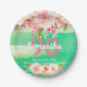 Assiettes En Carton Fête d'anniversaire fleuron vert bois