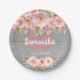 Assiettes En Carton Fête d'anniversaire fleurs grises en bois