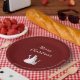 Plaques en papier rouge de Noël mignonne, avec dessin de chats et design de script élégant. Avec des lettres personnalisables en blanc, vous pouvez ajouter votre propre texte. Un ajout festif à votre table de fête de Noël.