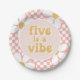 Cinq est une Vibe ! Retro checker imprimé avec Daisies Anniversaire assiettes de fête en rose.