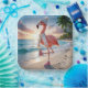 A vibrant flamingo, stylishly adorned with a cozy winter scarf, a snug knit cap, and playful pink boots, strutting confidently along a picturesque ocean beach