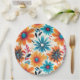 Une fabuleuse assiette de fleur de boho. Ce design floral coloré des années 70 présente des fleurs aux couleurs vives en orange et bleu. Un superbe design rétro de vaisselle qui se démarquera de la foule.