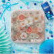 Fleurs délicates et pamplemousses tranchées sont astucieusement disposées sur un arrière - plan rose pâle et doux aux perles flottantes