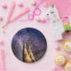Ce design présente une belle image de deux grands arbres qui s'élèvent dans le ciel, entourés d'autres arbres dans une forêt. Le spectacle est donné la nuit, quand tout est particulièrement magique et enchanteur. Il y a un troupeau d'oiseaux en vol au-dessus. Le ciel est composé d'un beau mélange de violet et de bleu, parsemé d'étoiles blanches et lumineuses.