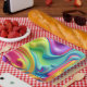 Forme fluide plastique coloré abstrait dans les couleurs arc-en-ciel.