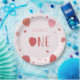 Fraise Berry Premier Anniversaire Plaques Papier C'est son premier anniversaire de baies 🍓 Planifier une fête de 1er anniversaire de fille ? Ces plaques de papier de première fête de la baie rose sont parfaites pour la nourriture à votre thème de fraise fête de premier anniversaire. La collection ICHIGO présente un arrière - plan rose clair avec des gribouillis rouges et roses, ainsi que des arcs dessinés à la main. UNE est épelée avec une fraise et des lettres dessinées à la main en rouge. Parfait pour un thème d'été 1er anniversaire de fille!