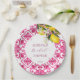 Carreaux Fuchsia Majolica magenta avec bouquet de citrons nuptiale douche vaisselle personnalisée assiettes de fête.