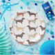 Parfait pour les amateurs de chiens et de chiens errants, ce dessin à motifs présente des couleurs rose corail, bleu turquoise, menthe, jaune, crème et marron avec des chiens portant des colliers et des pull-overs damassés.