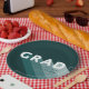 Célébrez votre grade avec ce design cool rétro vert et blanc avec le mot "GRAD" dans une grande police en gras. Dans les tons vert et blanc. Espace pour le nom ou le nom de l'école et l'information sur la "classe". Une partie d'une collection de Parcel Studios.