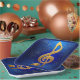 La clef G ou Treble en or, avec un arrosage de petites notes autour, image créée avec intelligence artificielle. Express l'essence musicale de vous avec des plaques de papier enveloppé de notation musicale.