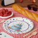 Plaque En Papier D'Anniversaire Colorée Avec Ballons En Forme De Coeur Avec Centre De Gâteaux D'Anniversaire Avec Bougies Sur Le Dessus