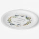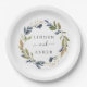 Ces assiettes en papier-cake mariage de couleur verte d'automne sont parfaites pour un mariage de automne. Le design rustique moderne présente des feuilles bleu marine, vert sauge et or avec des branches de fleurs bleu foncé. Ces assiettes en papier jetables sont parfaites pour le gâteau ou la table de desserts. Personnalisez-les avec les noms de la mariée et du marié.