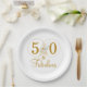 Assiettes En Carton Gold Floral Script 50e fête d'anniversaire