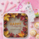 Ajoutez votre table avec notre plaque en papier Thanksgiving. Le design encadre votre repas d'une frontière époustouflante de feuilles d'érable en or et en pourpre, accentués par des grappes de baies rouges vifs. La pièce maîtresse comprend un arrière - plan parchemin avec les mots "Bon thanksgiving" et une ligne personnalisable pour votre nom de famille. Cette plaque durable et jetable apporte une touche d'élégance naturelle à votre fête de vacances.