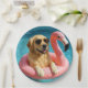 Assiettes En Carton Golden Retriever Floating On a Flamingo Pool Toy