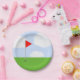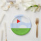 Fête de golf ou assiettes d'événements avec bâton rouge sur le fairway pour golfeur.