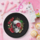 Assiettes En Carton Goth Crâne avec Fleurs rouges et Feuilles d'or