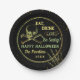 Assiettes En Carton Gothique Noir & Or Crâne Joyeux Halloween